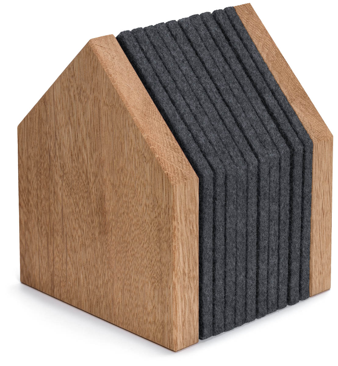 Are you wanting to avoid water stains on a wooden table, but your coasters have simply disappeared? This inn made of oak wood has room for 10 high-quality felt coasters and makes an eye-catching accessory on every table. So your coasters are always on hand and ready to use.