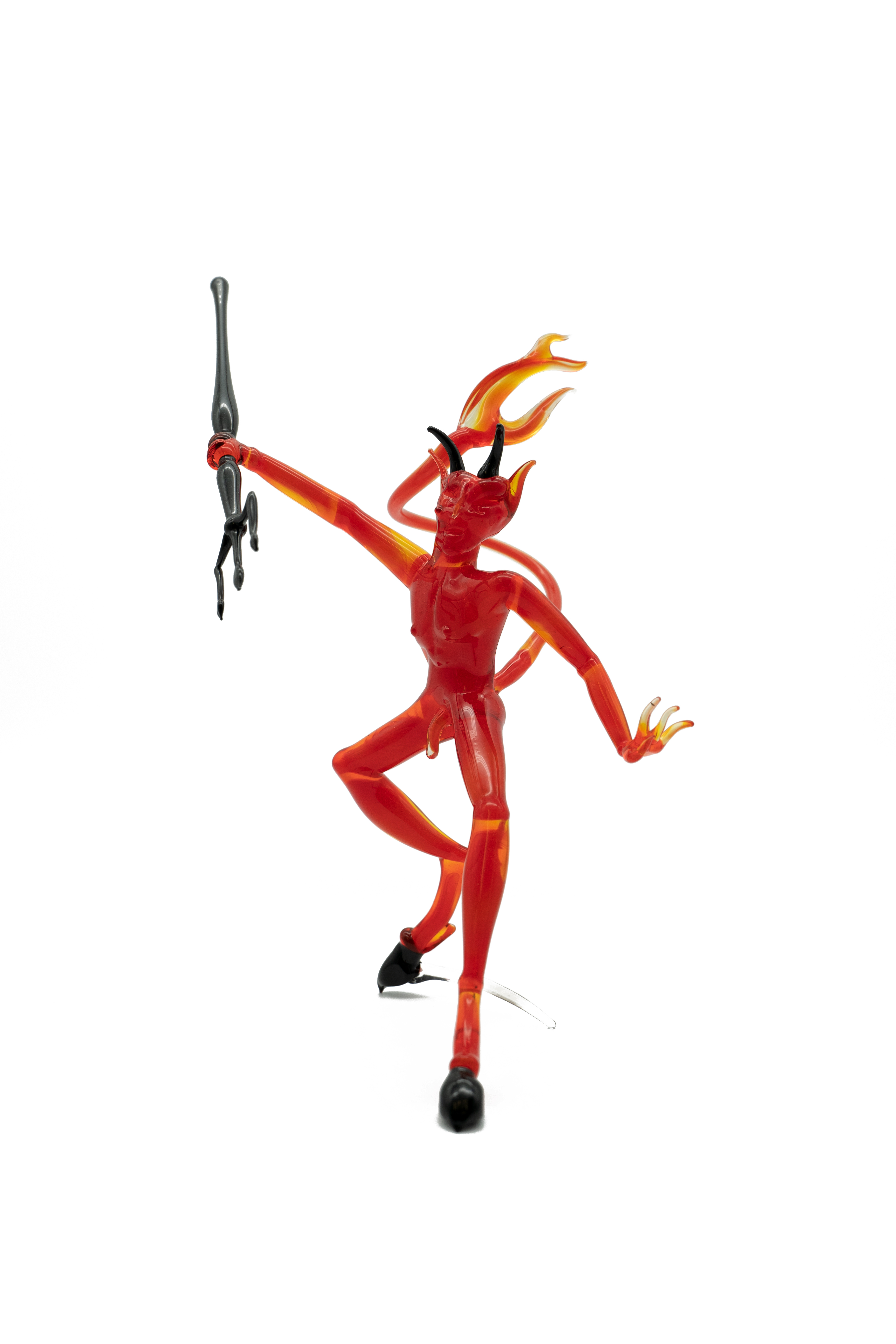 Introducing our captivating hand-crafted devil statue, expertly fashioned by skilled glassblowers. This striking piece of art embodies the allure and mystique of the mythical devil in a unique and visually captivating form.