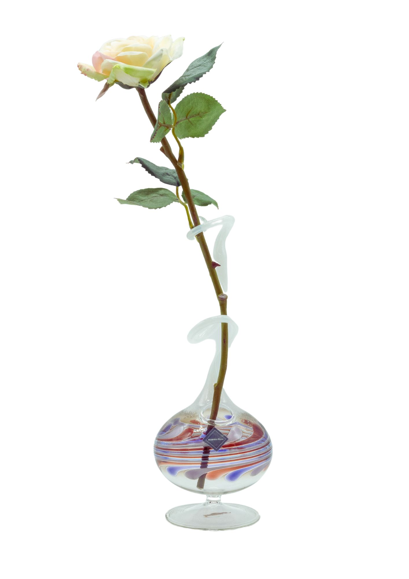 Gift yourself or a loved one this glassblower's creation—a work of art that not only holds a delicate bloom but elevates it to a realm of unparalleled artistry. Let the singular beauty of a lone rose find its perfect complement in this hand-crafted masterpiece, where the union of nature and craftsmanship unfolds in a harmonious ballet of elegance and grace.